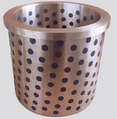 銅合金鑲嵌式固體潤滑劑自潤滑軸承,是在銅合金基礎(chǔ)上鑲嵌固體潤滑劑加工而成。銅基鑲嵌式固體潤滑軸承結(jié)合了銅合金的耐磨性及固體潤滑劑的自潤滑性能,使其在使用過程中無需加油維護(hù)。可以根據(jù)不同的使用工況提供不同牌號的銅合金基體,并按照要求加工成不同的形式。
